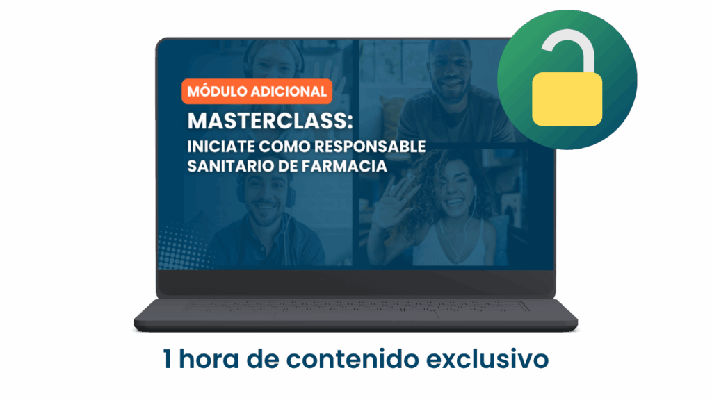 Al adquirir tu curso hoy desbloquearas el acceso al contenido exclusivo adicional: Masterclass Iniciate como Responsable sanitario de Farmacia.